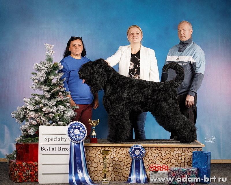 Впервые русский черный терьер поднялся на столь небывалуя высоту пьедестала! Бесценная благодарность и поздравления большой команде профессионалов, всем кто помог достичь непревзойденных результатов, Виктории Полозюковой, Анастасии Вавочкиной, Екатерине Пикуль, Татьяне Дубровской, Светлане Суховиенко, Дмитрию Котельникову и многим многим другим. Выражаем признательность экспертам и судьям, кто по достоинству оценил наши старания и заслуги.