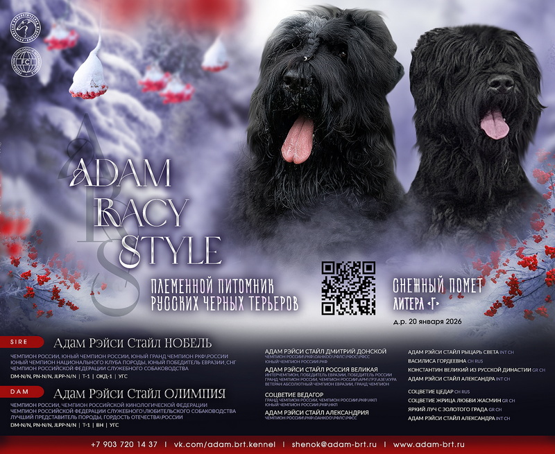 Новые интересные пометы и щенки ожидаются в январе, феврале, марте месяце предстоящего года, и далее также согласно утвержденному плану вязок питомника. Известные производители и новые крови активизируют участие в становлении породы Русский черный терьер.