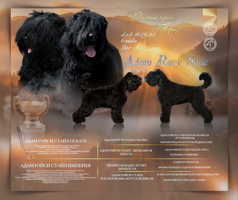 Новогодний помет будущих чемпионов. Крупные, статные ребята, продолжатели славной линии Адама и Аполлона. Для резервирования - породные щенки Русского черного терьера из питомника, одна красивая и очень перспективная сука и три замечательных кобеля.