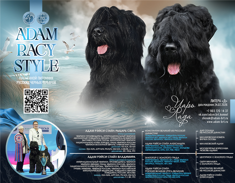 Новые интересные пометы и щенки ожидаются в декабре, январе и феврале месяце предстоящего года, и далее также согласно плану вязок питомника. Известные производители и молодые крови активизируют поддержку и развитие породы Русский черный терьер.